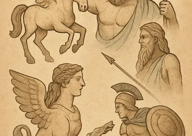 Poseidon: Denizler ve depremler tanrısı. Üç dişli mızrağı (trident) ile okyanuslara hükmeder. Hırçın mizacıyla tanınır.